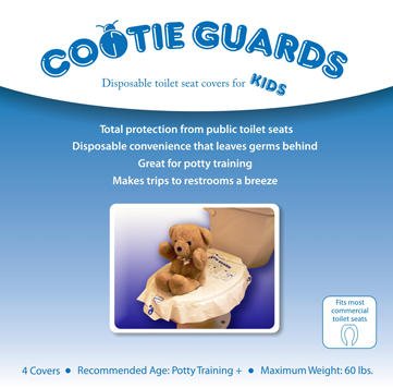 |      1 of 1 people found the following review helpful    This review is from: Cootie Guards (4) Pack - Disposable Toilet Seat Covers For Kids (Baby Product)   This product is like a child potty seat and disposable potty seat cover in one. Before these came on the market I would carry around a folding potty seat and the best brand of disposable seat protectors that I could find, I have tried them all, and they would always shift around and never be stable or dependable, my son hated them. Cootie Guards stay put and do not shift! They are about the size of a folded piece of paper folks, throw away those travel potty seats and unreliable potty seat covers, Cootie Guards is what you are looking for.   By   TSK (New York, NY United States) -  See all my reviews  This review is from: Cootie Guards (4) Pack - Disposable Toilet Seat Covers For Kids (Baby Product)   As a germophobe myself, I do not come in direct contact with any part of a public restroom and I fretted what I would do when I had to toilet train my little one, and the thought of carrying a portable potty seat was wholly unappealing. Overall, I am thrilled to have found Cootie Guards. I love that they WHOLE public toilet seat is covered so that I don't have to worry about my little one touching the sides of the toilet seat. Cootie Guards not only cover the seat, but they have a smaller opening so they also act as a toilet seat reducer. The super strong material easy supports my toddler, so I don't have to worry about her little tush falling into the toilet. The instructions are clear and Cootie Guards are very easy to use. There are even little pictures to show you where to hold onto to the Cootie Guard to slide it onto the toilet seat. It's simple and sanity to get them on and off the toilet. Cooties Guards weigh next to nothing and fold up easy to fit into a regular size...  Read more    |